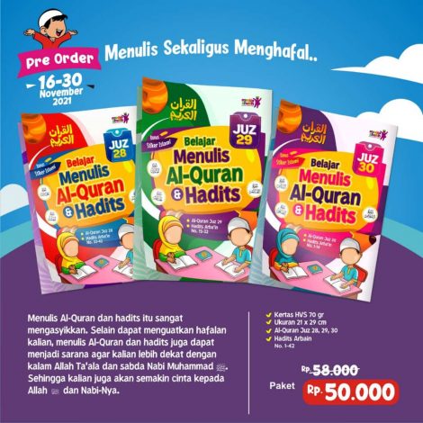 Belajar Menulis Alquran Juz 28-30 dan Hadits Arbain 1-42