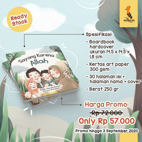 Buku sayang karena Allah ini bercerita tentang hadirnya anak-anak di dalam sebuah keluarga mulai dari anak diamanakhan di rahim sang ibu hingga ia tumbuh dan berkembang menjadi anak anak yang sholeh, anak-anak yang baik, yang pintar, yang aktif disertai dengan doa-doa para nabi dan orang orang sholeh yang Allah abadikan dalam Alqur’an dan menjadi doa semua orang tua.